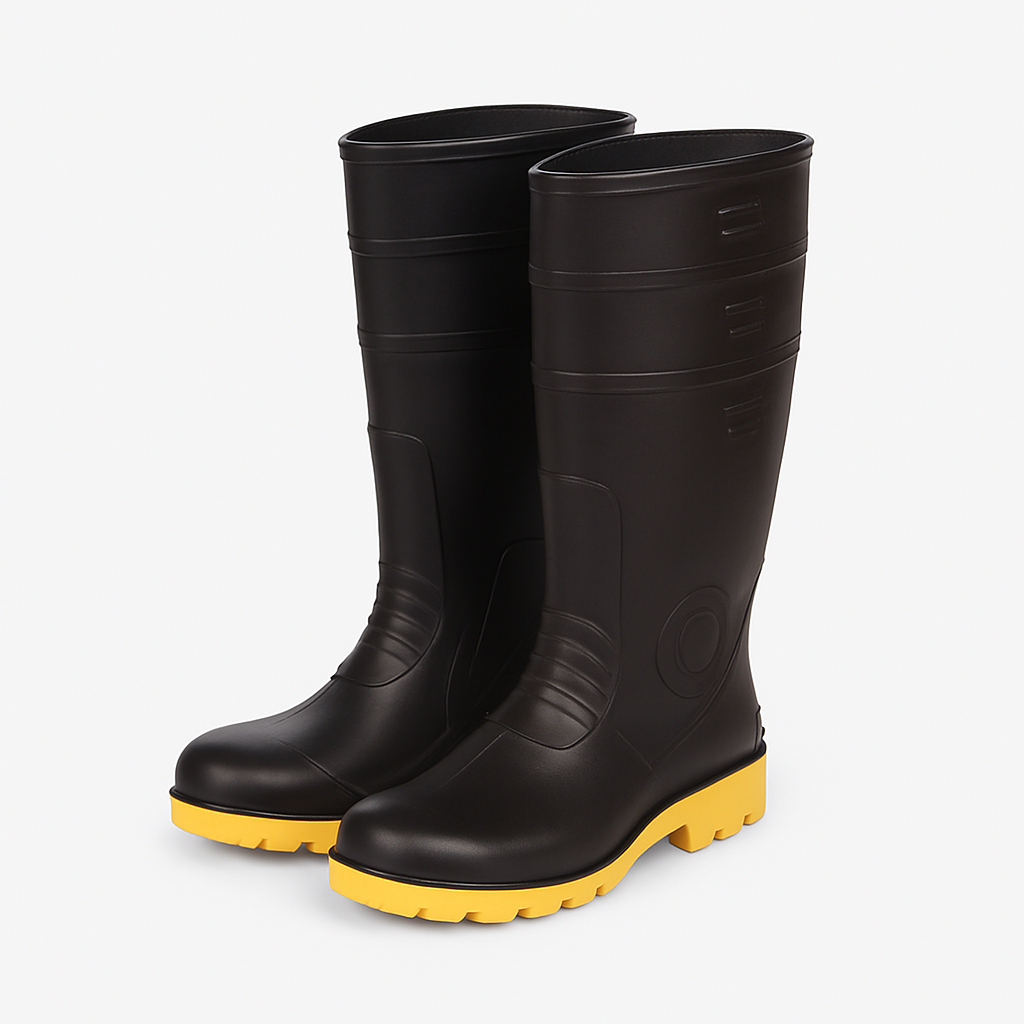 The gum shoes industrial safety equipment supplied by HA Tradings complies with international standards such as EN ISO 20345:2022 and ASTM F2413-18, ensuring top-tier safety performance. Crafted from high-grade PVC or rubber (4–6 mm thickness), these gumboots feature steel toe caps (200 joules impact resistance) and optional penetration-resistant midsoles. Available in sizes 6 to 11, they include anti-slip soles with SRA/SRB slip resistance ratings and are resistant to oils, chemicals, and acids. The boots are fully waterproof, with options for textile lining for added comfort and heights ranging from 12 to 15 inches.